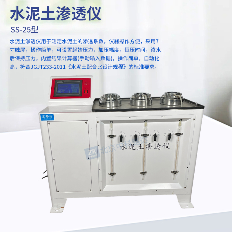 水泥土渗透仪用于测定水泥土的渗透系数,仪器操作方便,采用7寸触屏,操作简单,可设置起始压力,加压幅度,恒压时间,渗水后保持压力,内置结果计算器(手动输入数据),操作简单,自动化高,符合JGJT233-2011《水泥土配合比设计规程》的标准要求。