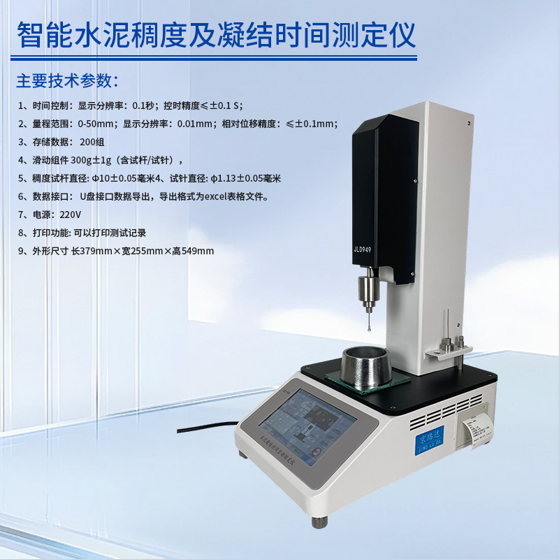 本仪器主要用于测定水泥净浆的标准稠度用水量和凝结时间,实现水泥稠度、初终凝时间自动测定。符合GB/T 1346-2024《水泥标准稠度用水量、凝结时间与安定性检验方法》的标准要求。
